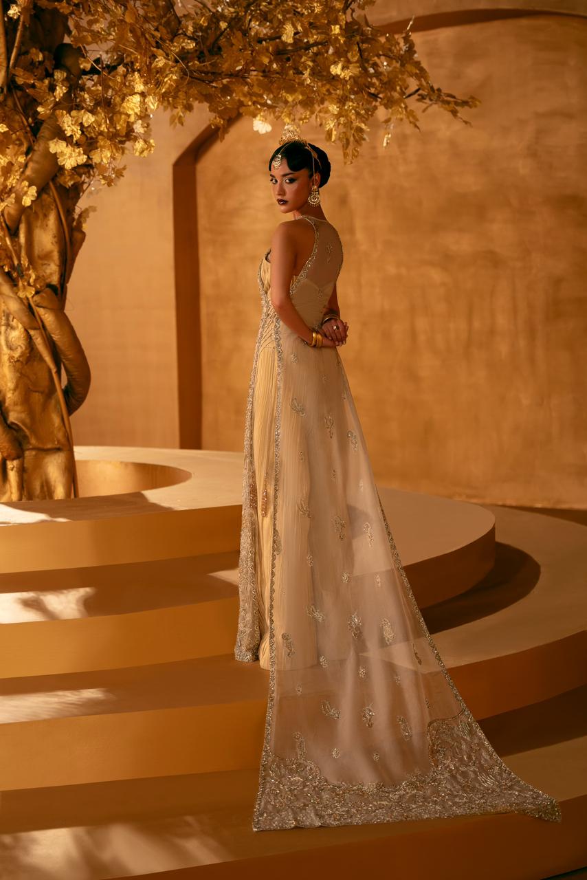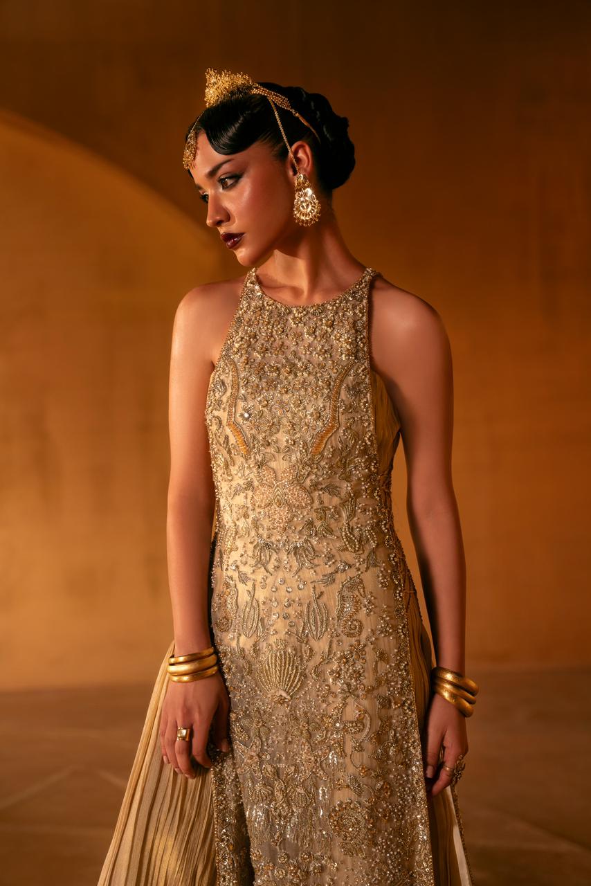Our handwork features the most intricate techniques — dabka, nakshi, tila, cut dana, sequins — delicately blended with modern accents of pearls and crystals reminiscent of fine jewels.
