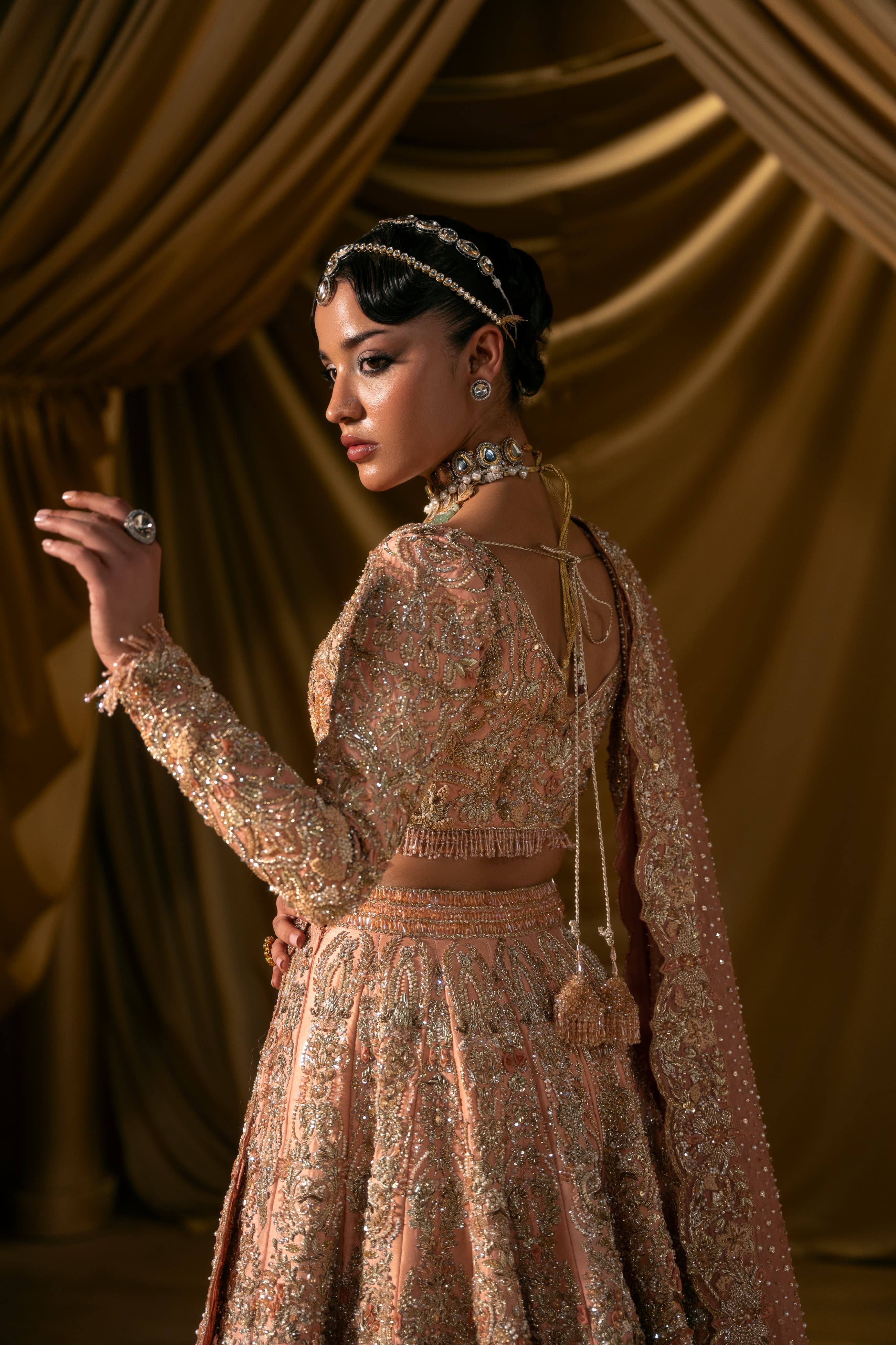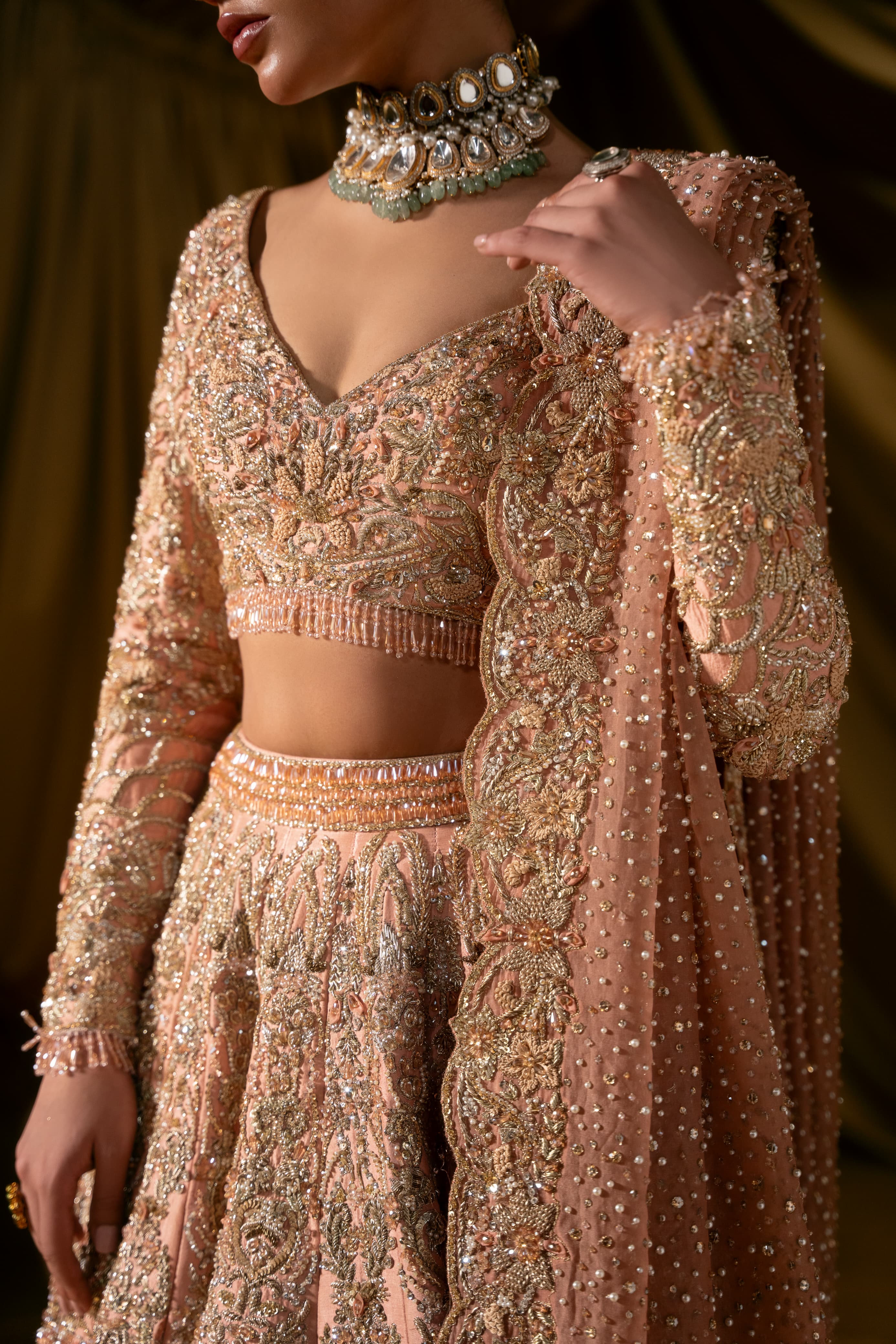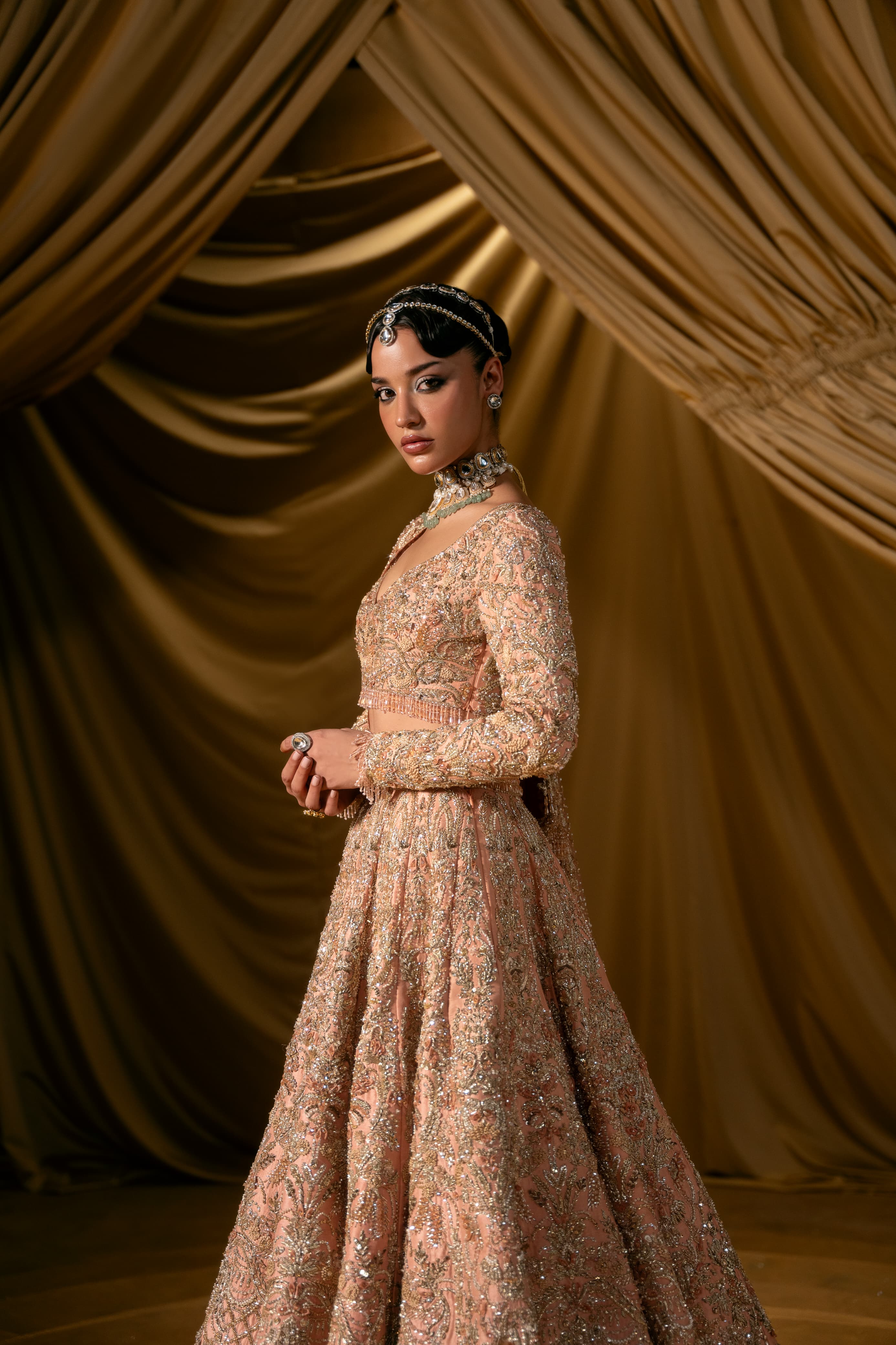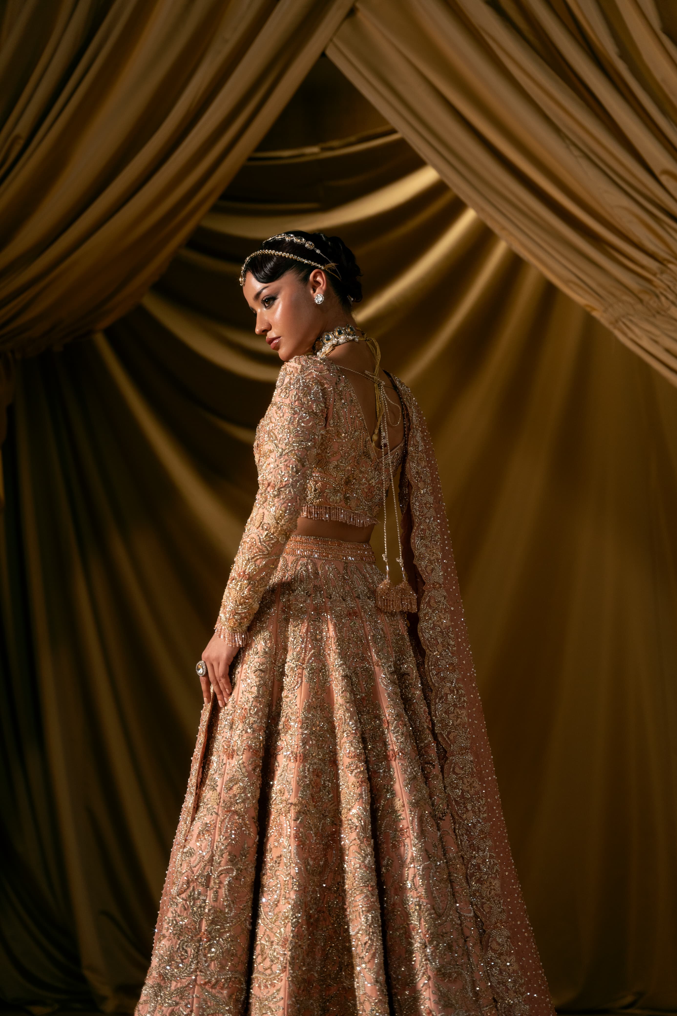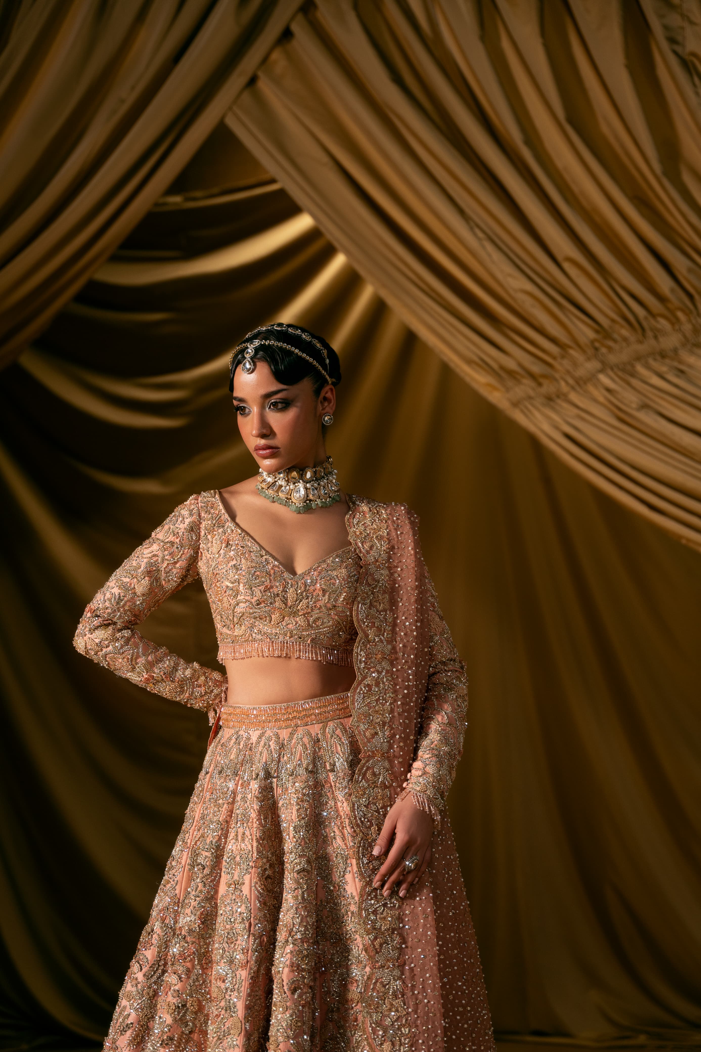 Every HiraHania outfit is handmade with over minimum 2160 hours of labour, where tradition meets timeless artistry. Our handwork features the most intricate techniques — dabka, nakshi, tila, cut dana, sequins — delicately blended with modern accents of pearls and crystals reminiscent of fine jewels.