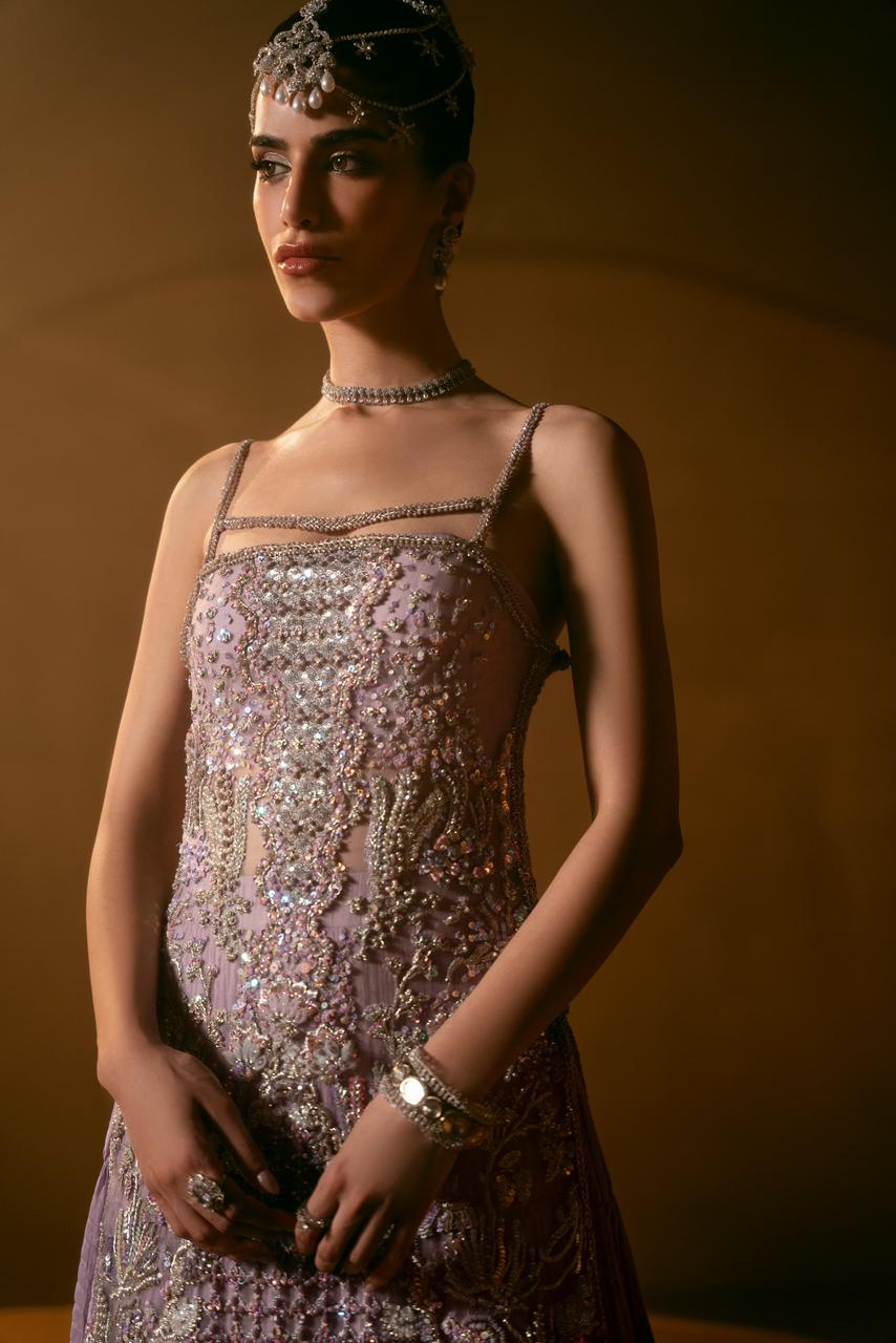 Our handwork features the most intricate techniques — dabka, nakshi, tila, cut dana, sequins — delicately blended with modern accents of pearls and crystals reminiscent of fine jewels.