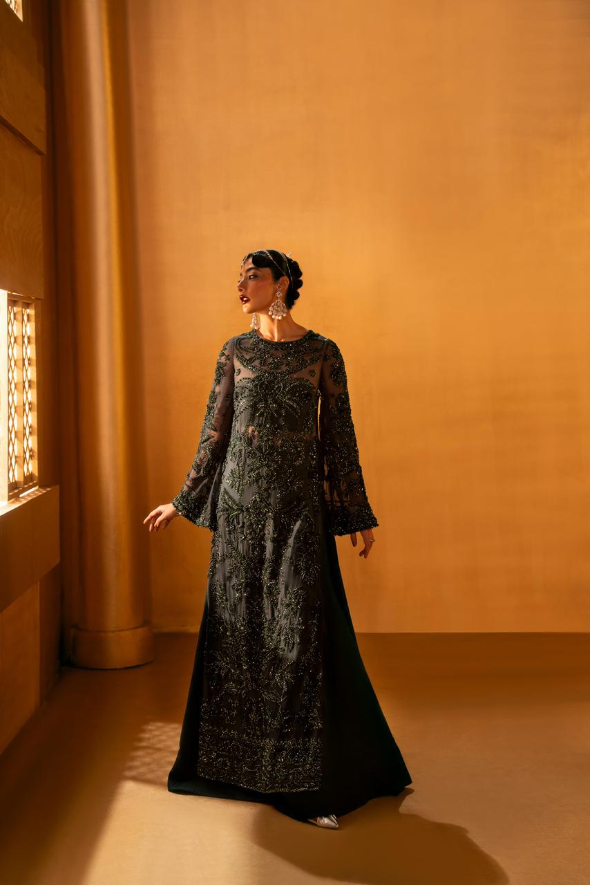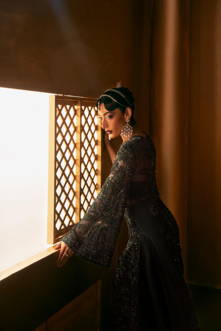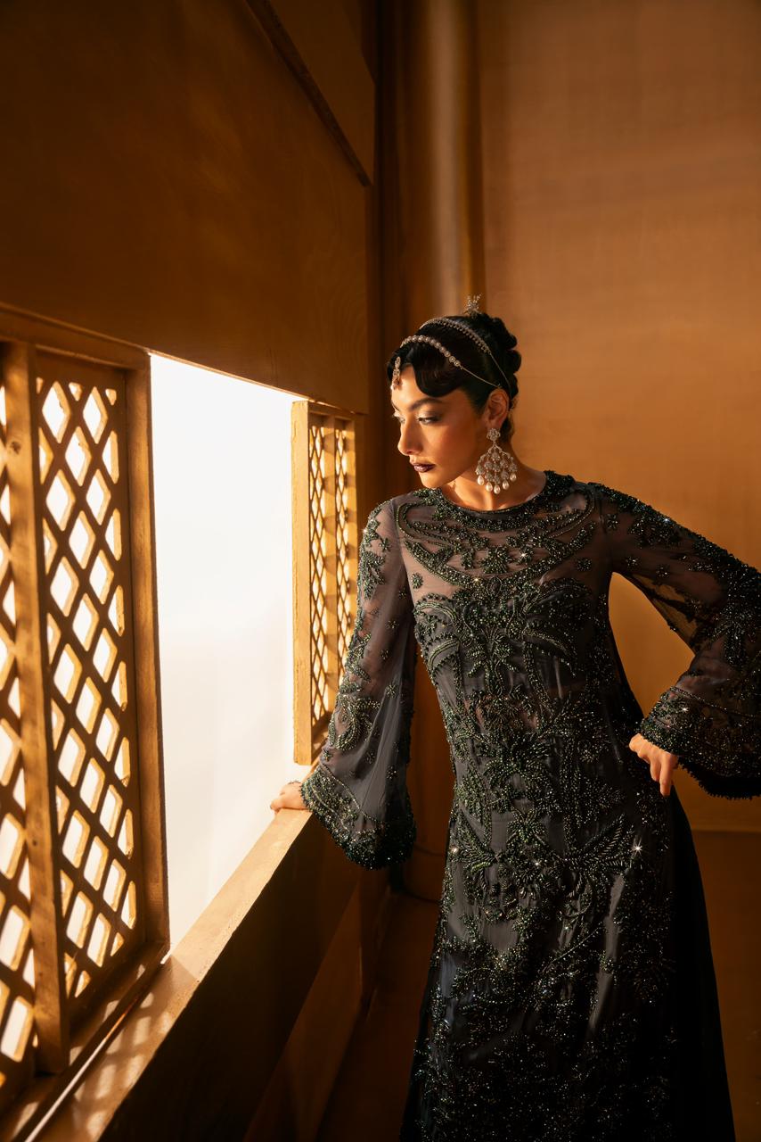 Our handwork features the most intricate techniques — dabka, nakshi, tila, cut dana, sequins — delicately blended with modern accents of pearls and crystals reminiscent of fine jewels.