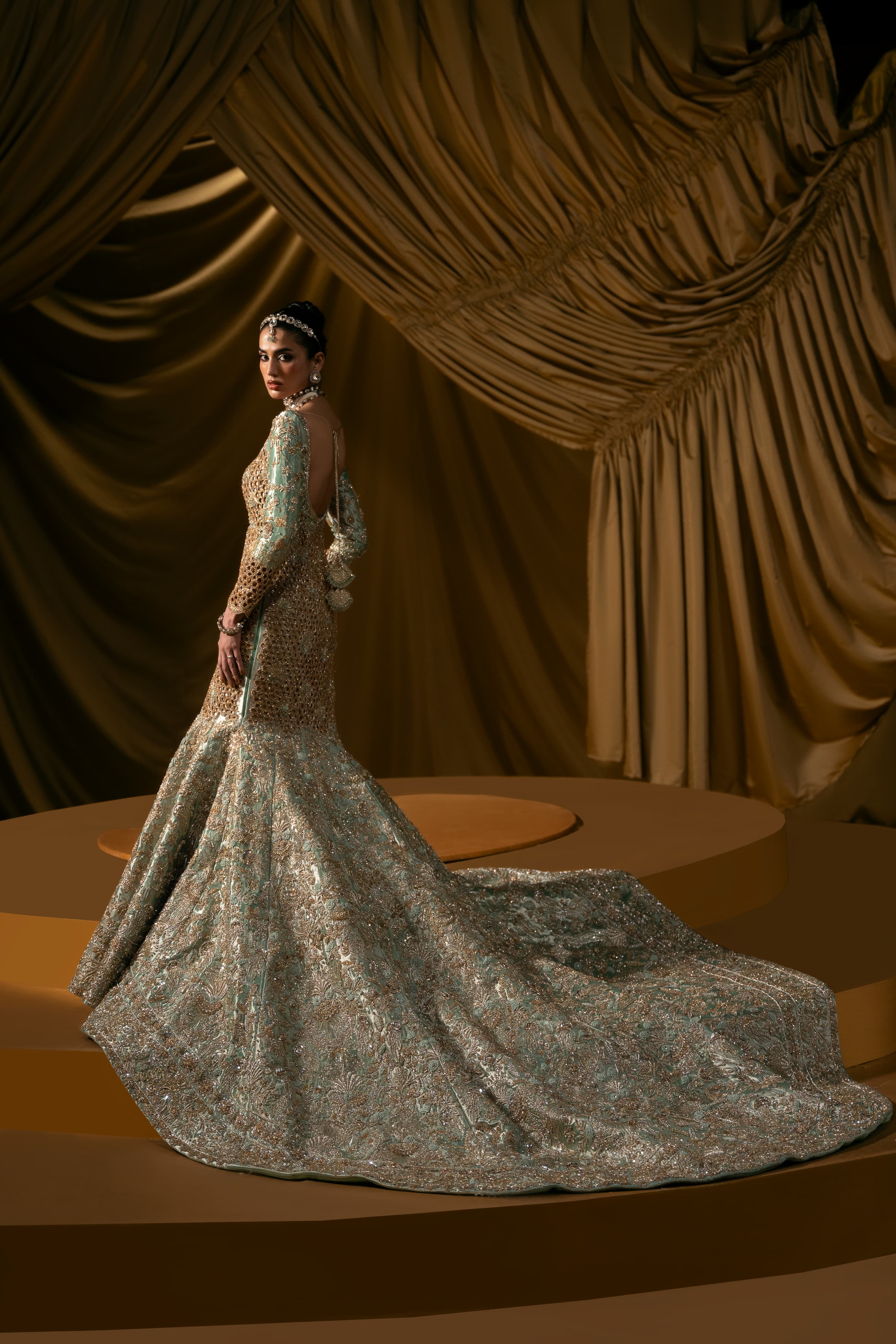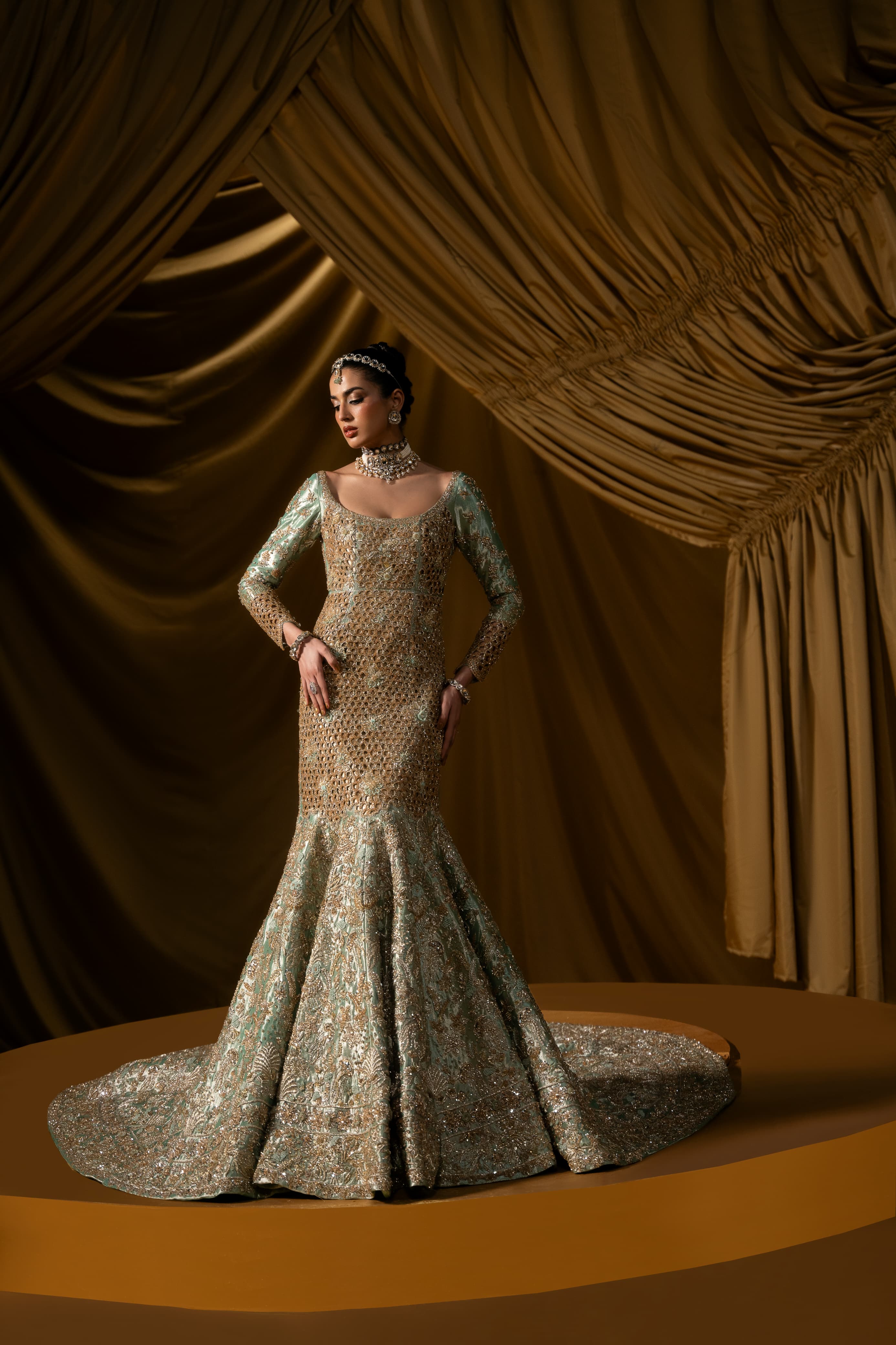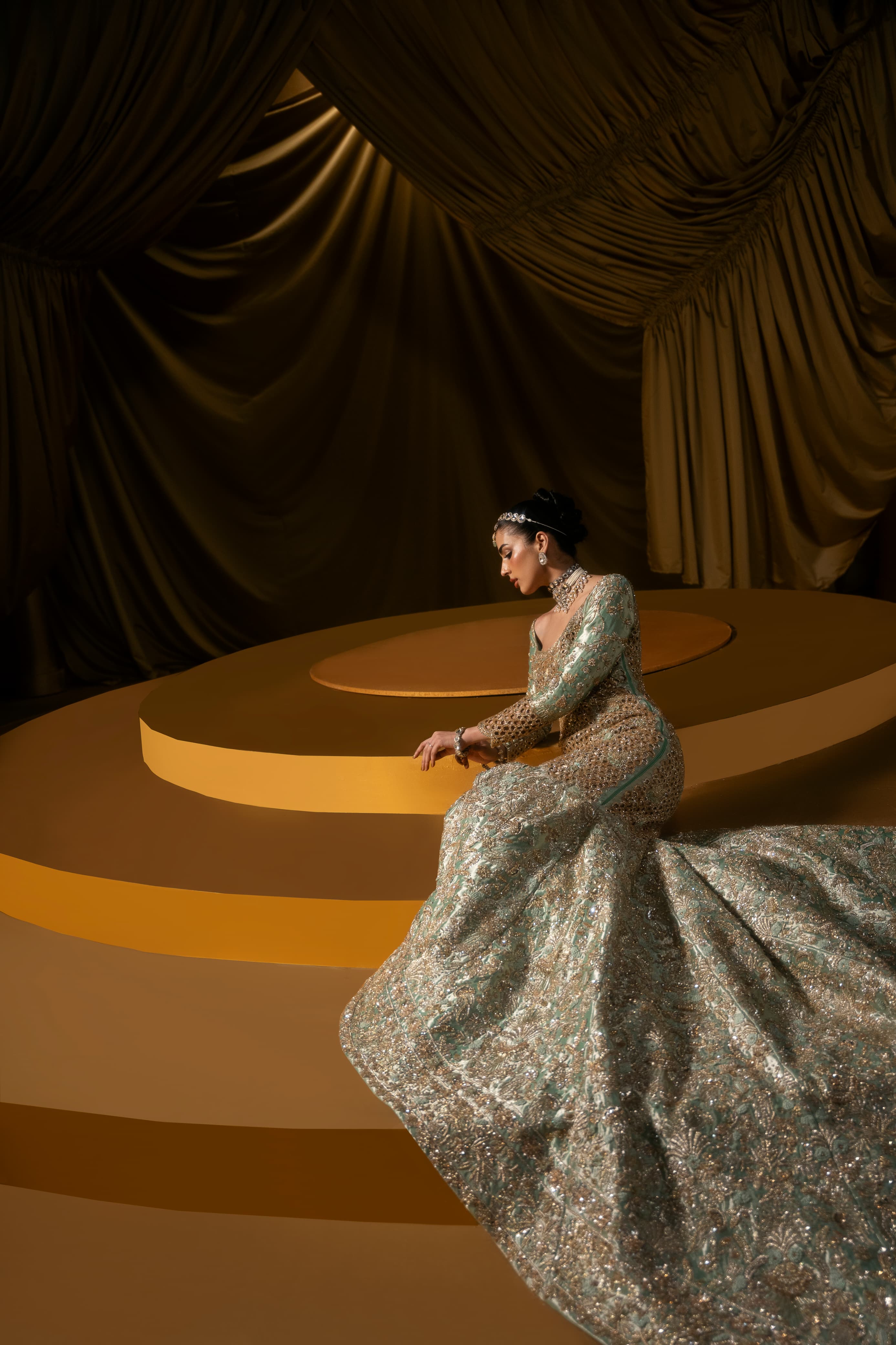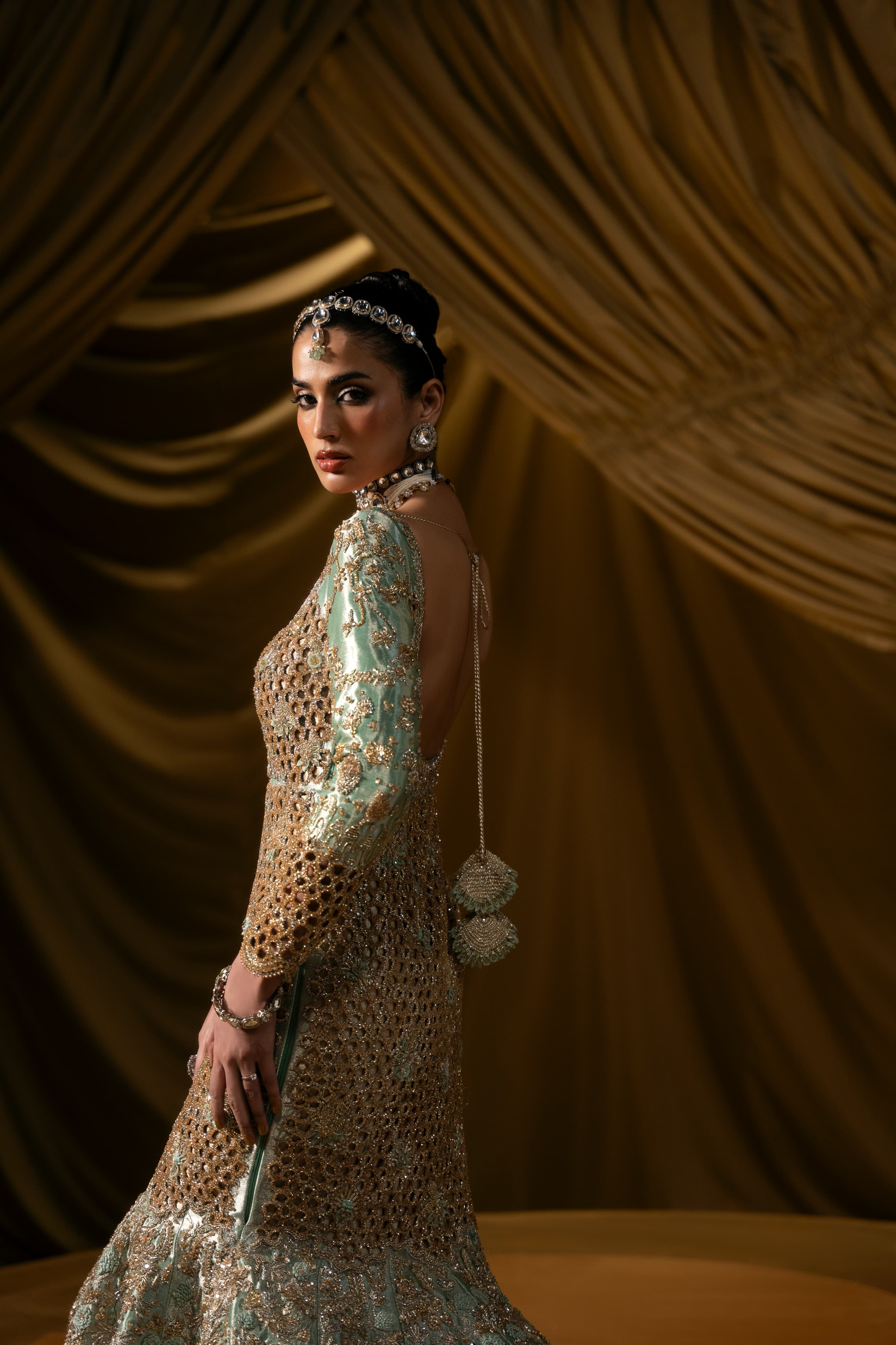 Every HiraHania outfit is handmade with over minimum 2160 hours of labour, where tradition meets timeless artistry. Our handwork features the most intricate techniques — dabka, nakshi, tila, cut dana, sequins — delicately blended with modern accents of pearls and crystals reminiscent of fine jewels.